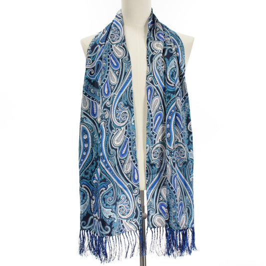 Italo Ferretti NWT Scarf in Blues/White Paisley with Fringe 100% Silk