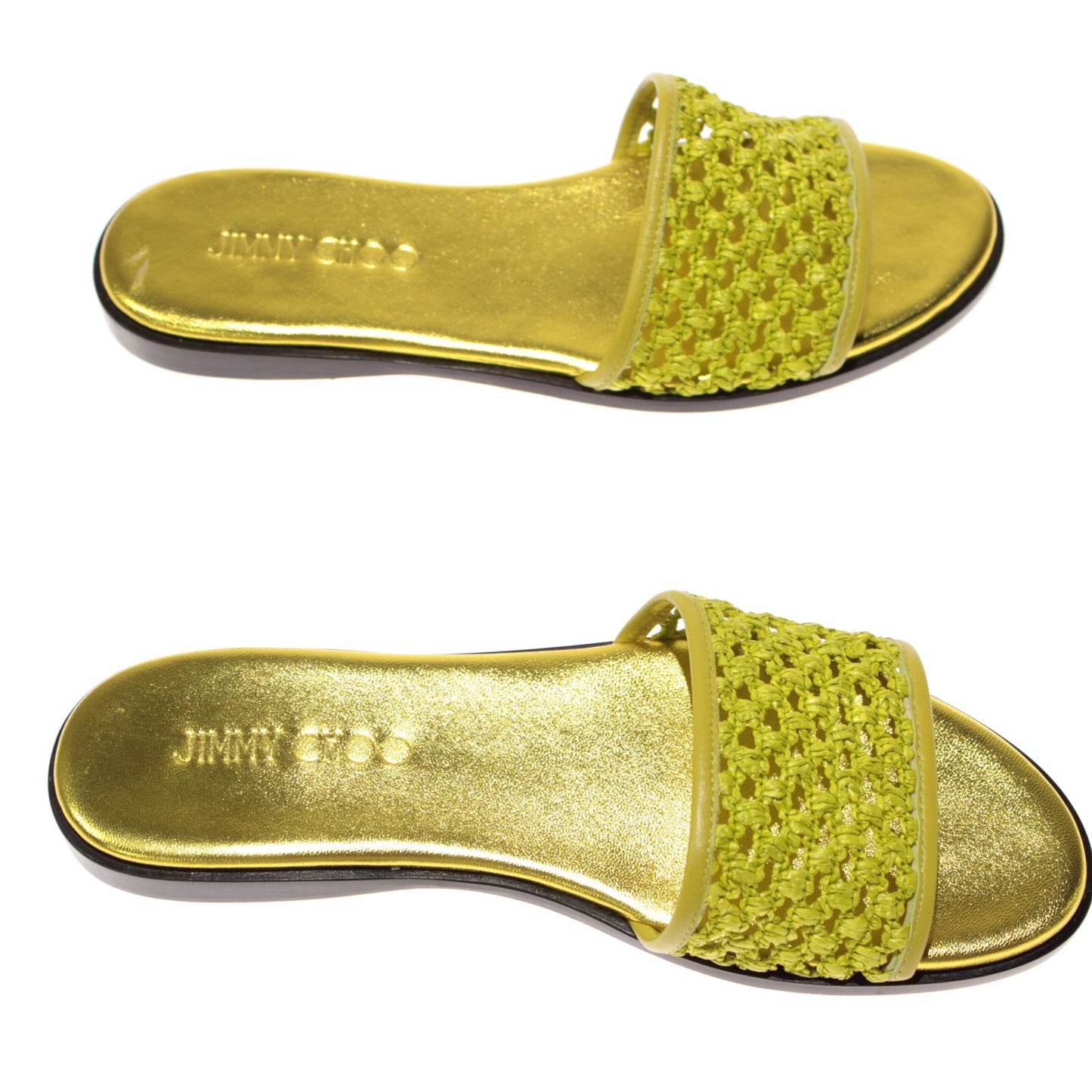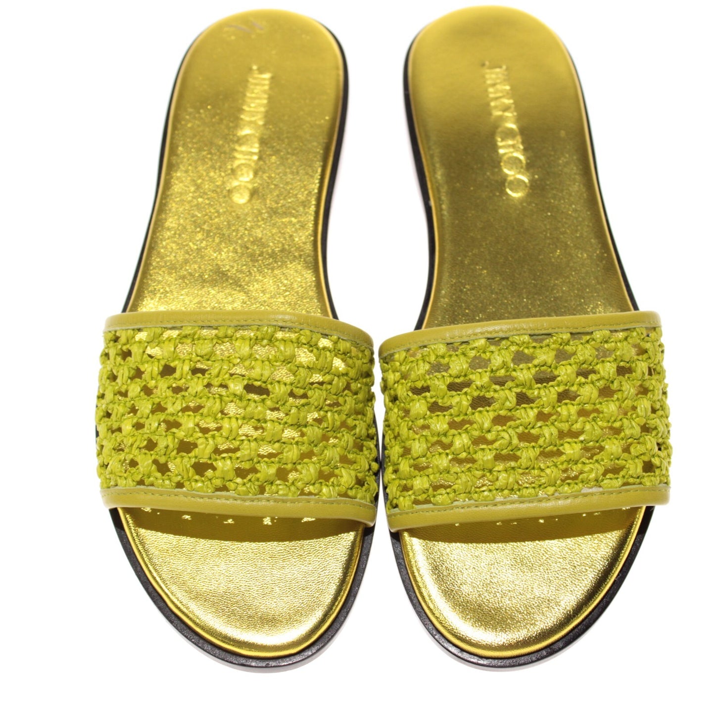 Jimmy Choo NWB Minea Flat Sandals Size 36.5 6.5 US In Lime Green