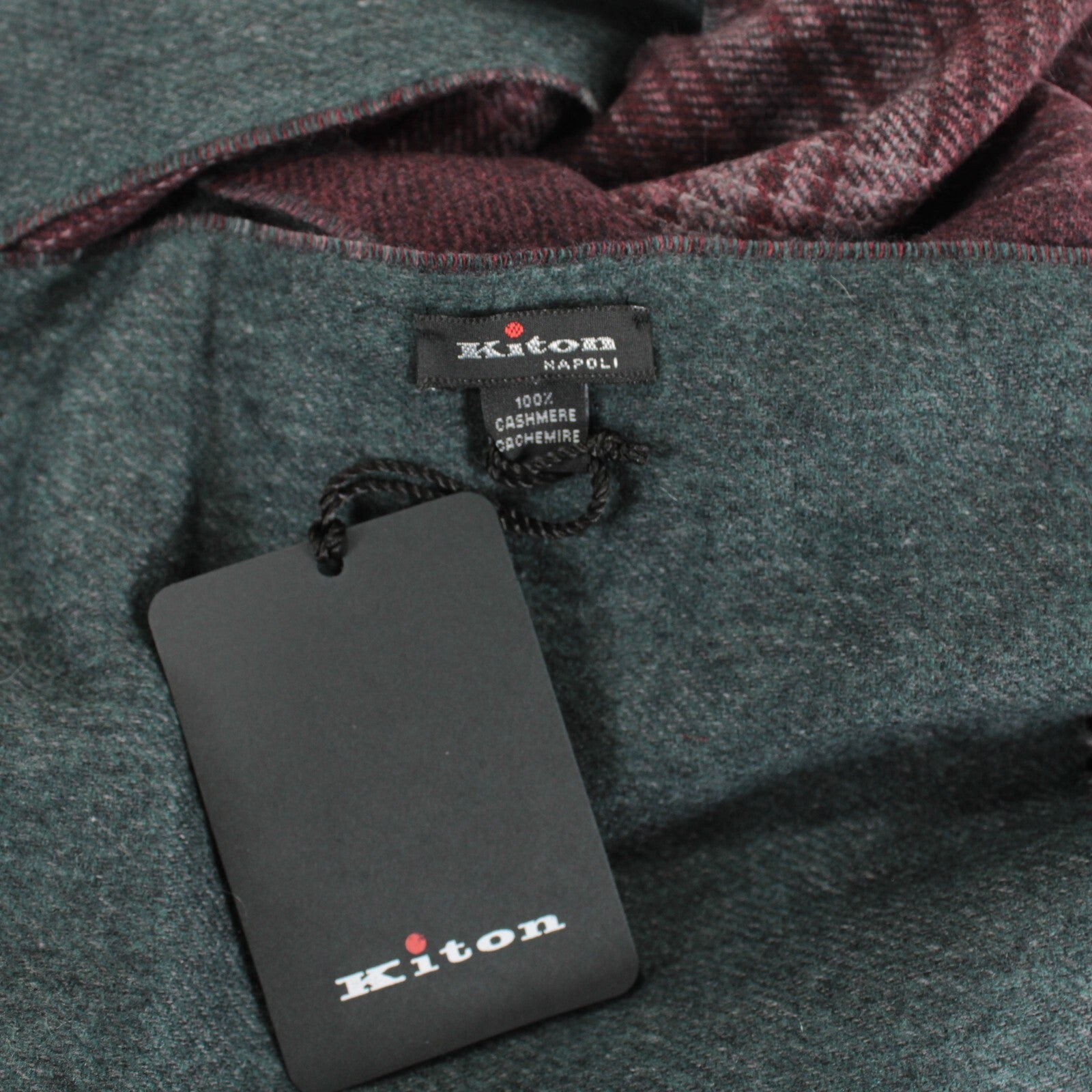 Kiton NWT Plaid Scarf One Size Burgundy/Gray/Green 100% Cashmere Made in Italy