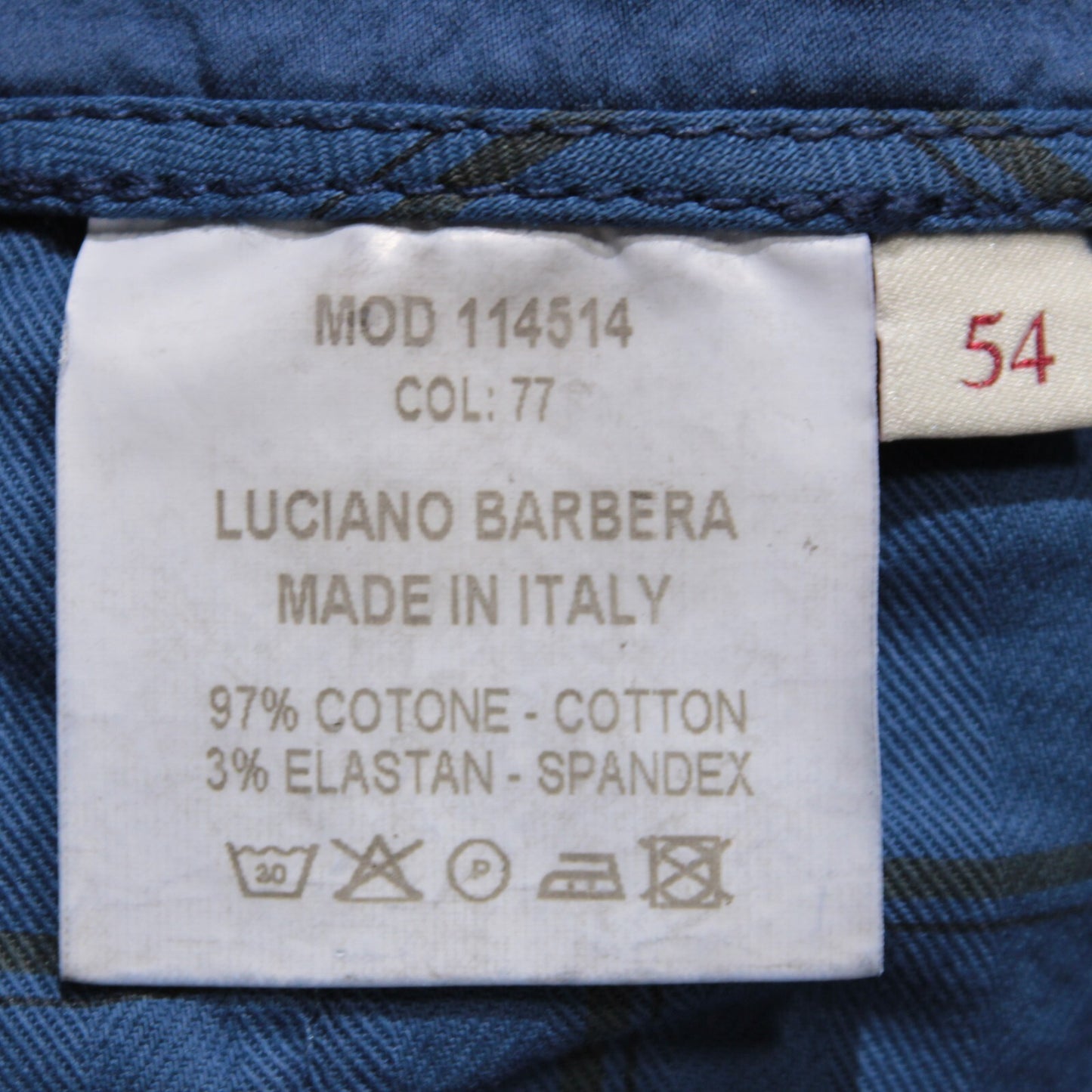 Luciano Barbera NWT Chinos / Casual Pants Size 54 38 US In Solid Blue Cotton