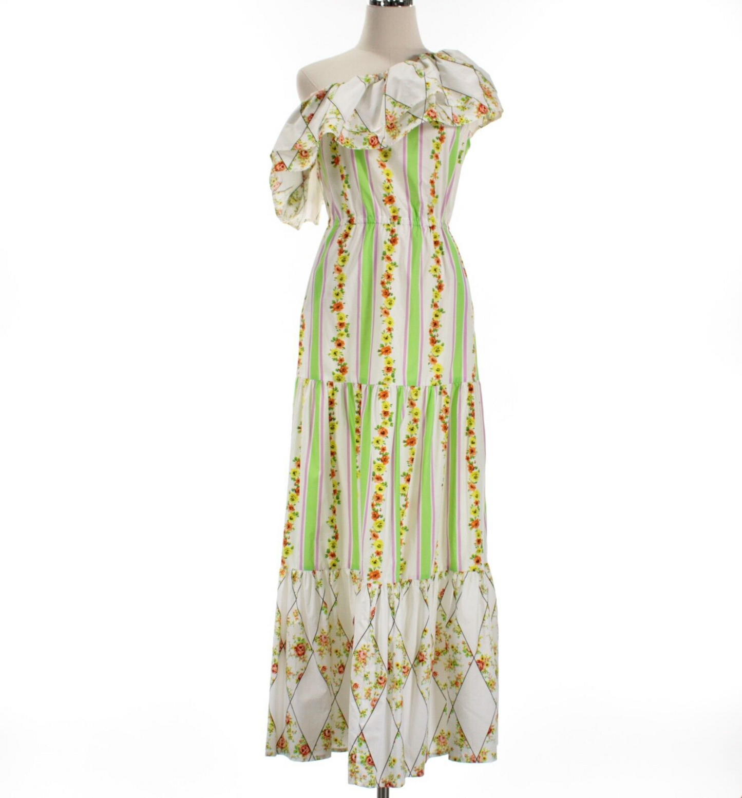 MSGM NWOT One Shoulder Floral Printed Dress Size 42 US 8 White/Green/Multicolor