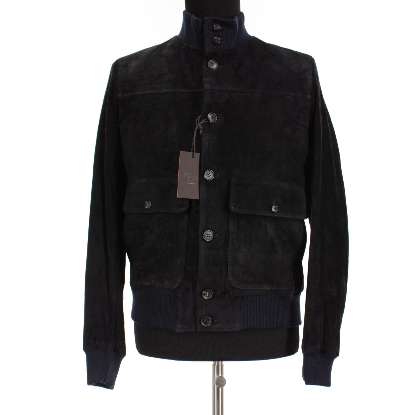 Rifugio NWT Button Up Suede Leather Bomber Jacket Size 48 US Small in Solid Blue