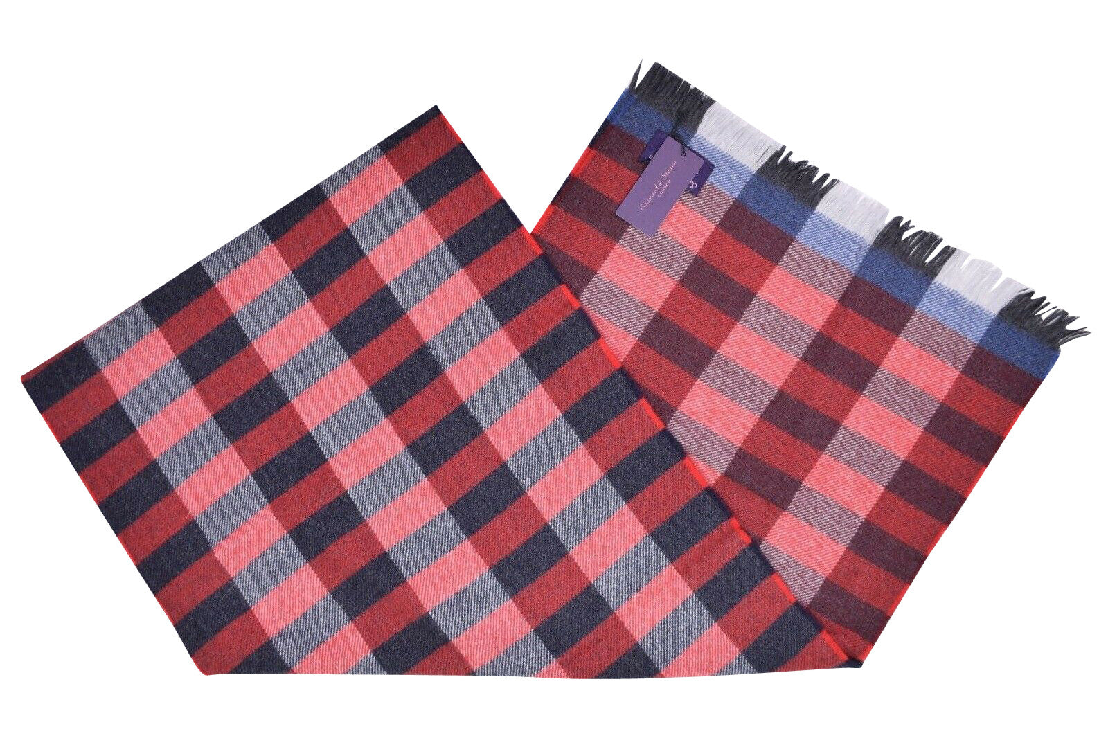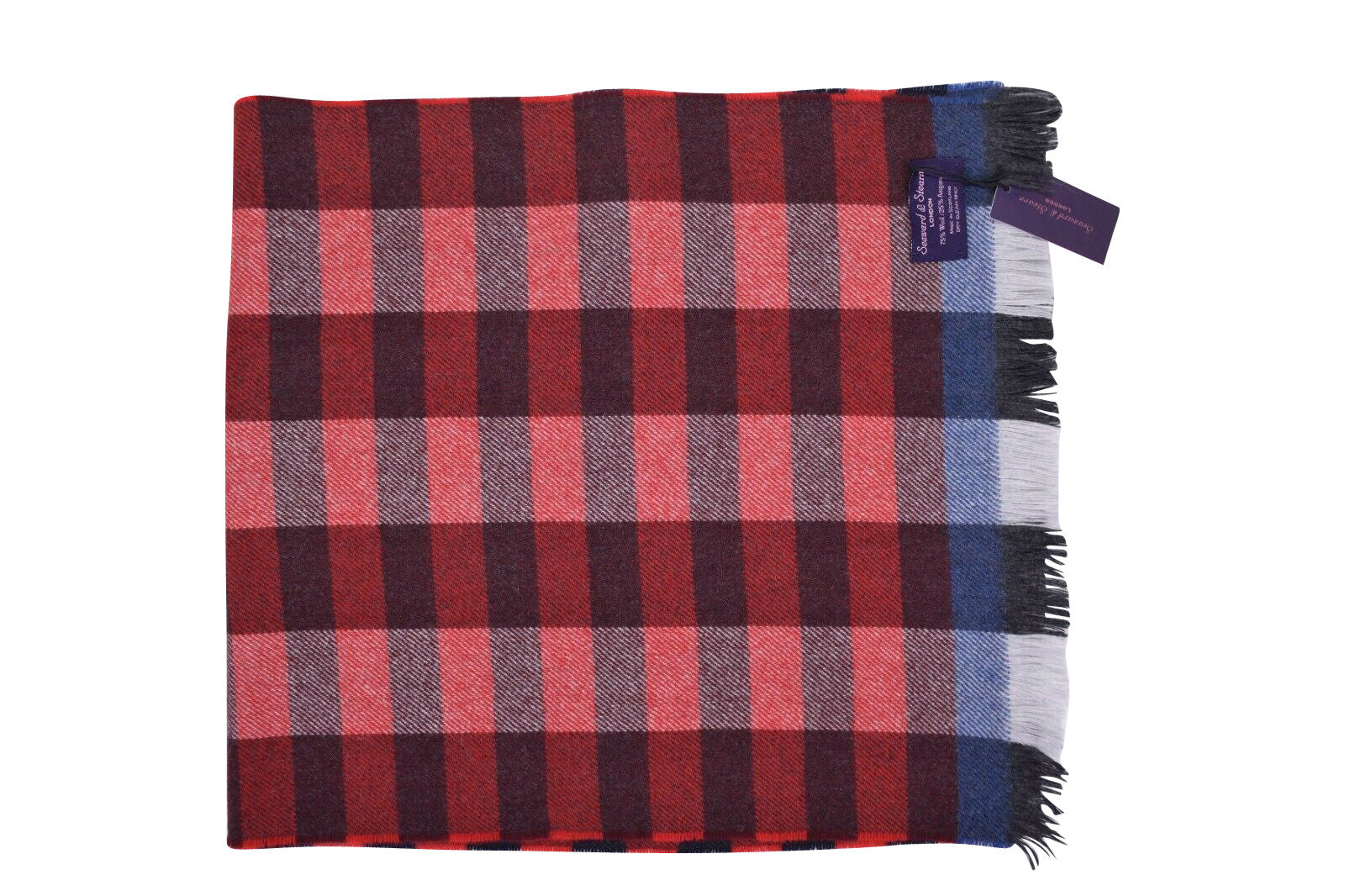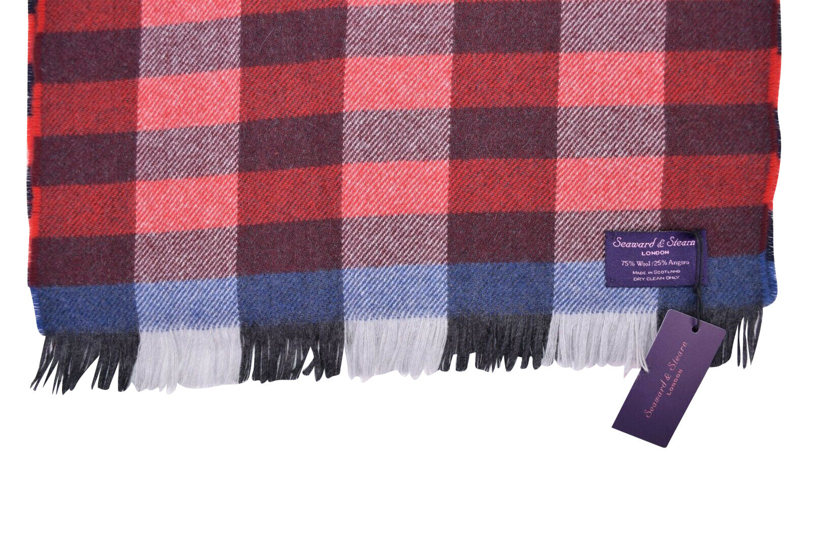 Seaward & Stearn NWT Wool & Angora Scarf In Red Maroon Blue & white Plaid