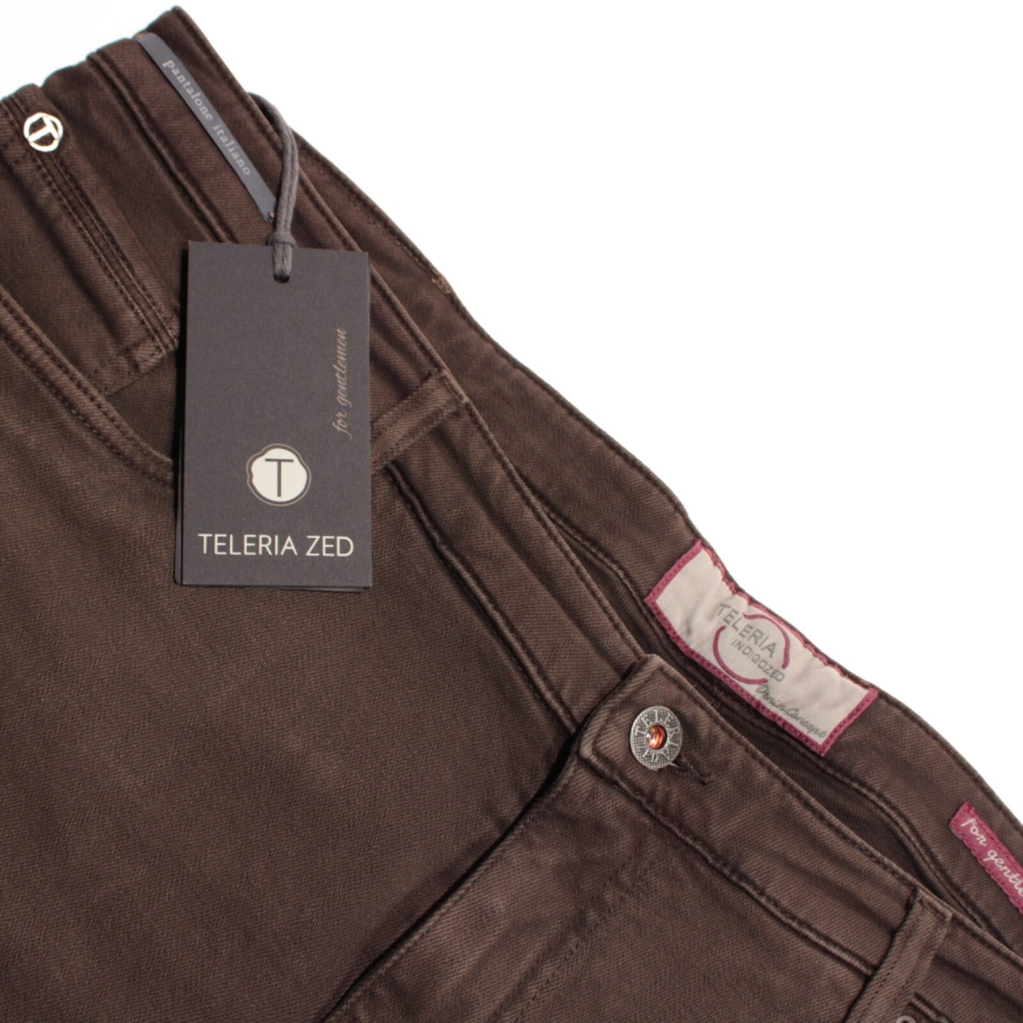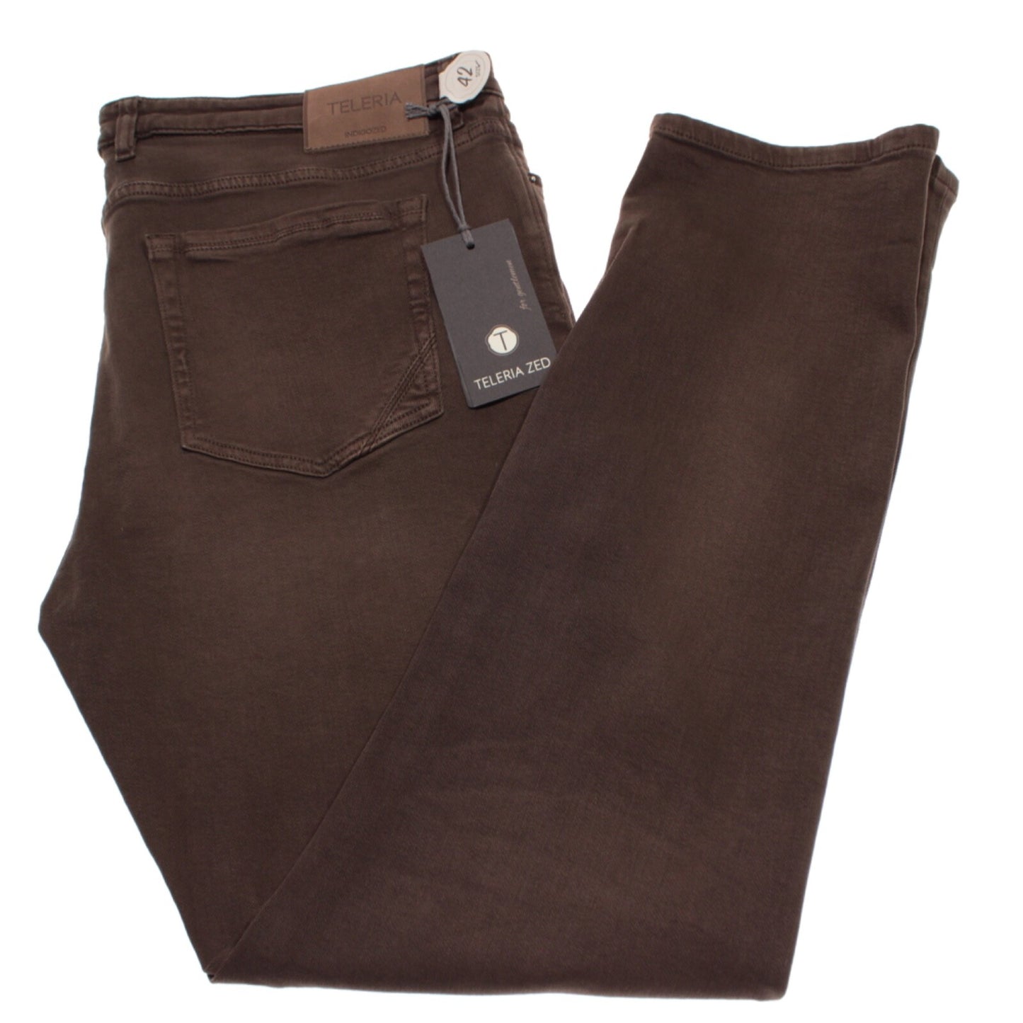 Teleria Zed NWT 5 Pocket Jean Cut Pants Size 42 US In Solid Brown Cotton Blend