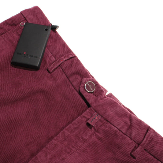 Kiton NWT Casual Chino Corduroy Pants Size 34 US In Solid Burgundy Cotton Blend