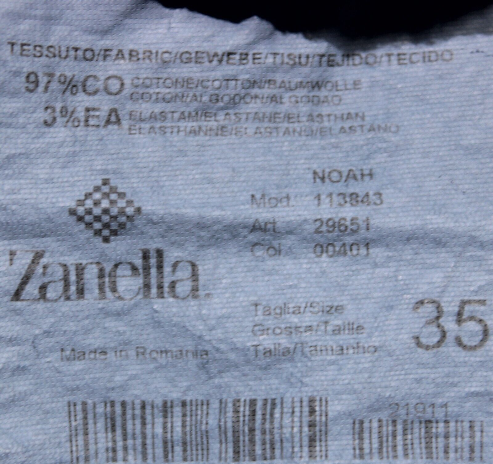 Zanella NWT Chinos / Casual Pants Size 35 US Noah In Solid Blue Cotton Blend