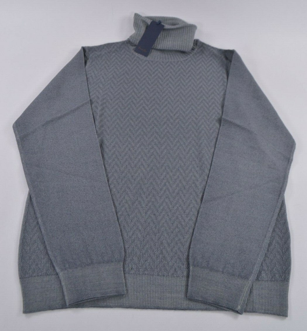 Zanella NWT Washed Merino Wool Herringbone Turtleneck Sweater Size M in Gray